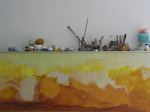 - 27 schilderijen en een een aantal waterwerkjes tonen mijn beleving van tijd en ruimte, speciaal in Flevoland. Inspiratiebronnen: het landschap, de taal, de herinnering, en hoe die met elkaar te rijmen zijn iin beeld